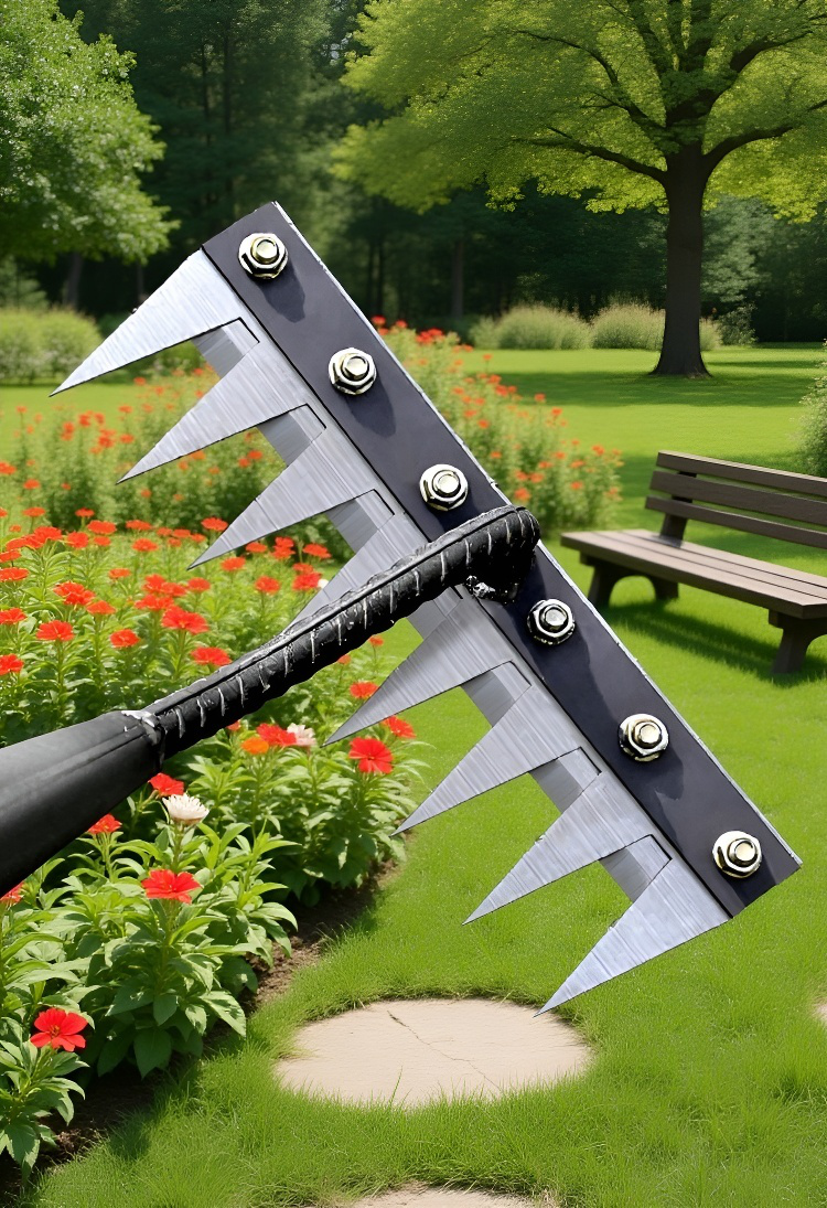 取り外し可能な7本歯釘かき鍬のクローズアップ